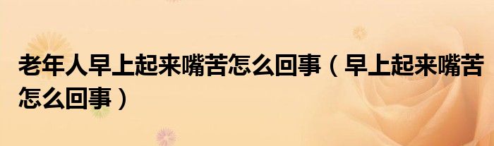 大家好,linda来为大家解答以上的问题。老年人早上起来嘴苦怎么回事,早上起来嘴苦怎么回事很多人还不知道,现在让我们一起来看看吧!