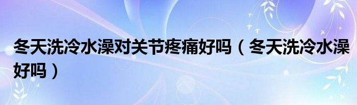 大家好,linda来为大家解答以上的问题。冬天洗冷水澡对关节疼痛好吗,冬天洗冷水澡好吗很多人还不知道,现在让我们一起来看看吧!