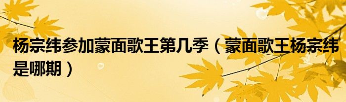 大家好,小晋来为大家解答以下问题,关于杨宗纬参加蒙面歌王第几季,蒙面歌王杨宗纬是哪期很多人还不知道,今天让我们一起来看看吧!