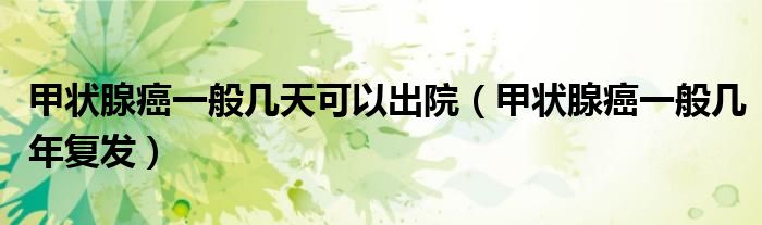 大家好,linda来为大家解答以上的问题。甲状腺癌一般几天可以出院,甲状腺癌一般几年复发很多人还不知道,现在让我们一起来看看吧!