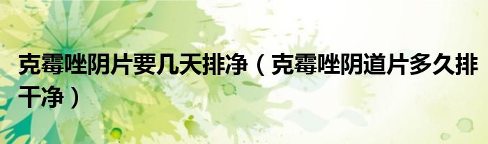 1、克霉唑阴道片主要用作治疗霉菌性阴道炎的抗真菌药物,阴道给药后2-3天可完全排出。
