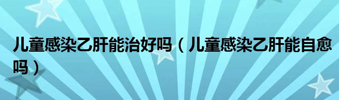 大家好,linda来为大家解答以上的问题。儿童感染乙肝能治好吗,儿童感染乙肝能自愈吗很多人还不知道,现在让我们一起来看看吧!
