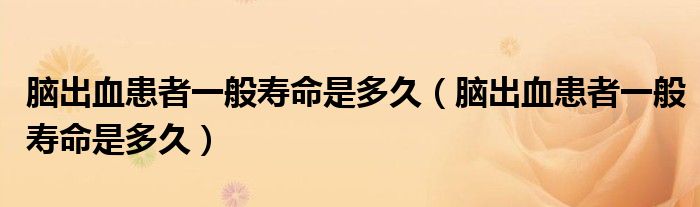 大家好,linda来为大家解答以上的问题。脑出血患者一般寿命是多久,脑出血患者一般寿命是多久很多人还不知道,现在让我们一起来看看吧!
