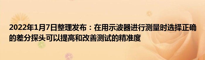 2022年1月7日整理发布:在用示波器进行测量时,选择正确的差分探头可以提高和改善测试的精准度。在选择差分探头的时候,应确保其具有充足的带宽进行应用测量,至少其带宽值不应该小于示波器的带宽值。其次,应确保其最大差分电压大于需要的测量范围以及共模抑制比满足测试的要求。