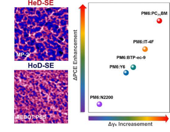 由于HeD-SE对活性层形态的优化,有机太阳能电池的性能和稳定性得到了提高,最佳功率转换效率(PCE)为18.27%。此外,PCE 的增强率与 BHJ 中 Δγ s的增大成正比。