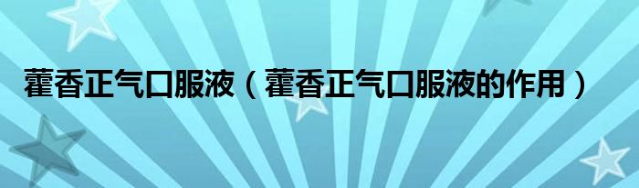 3、以上是藿香正气口服液的治疗方向。