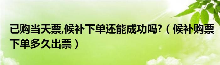 大家好,小晋来为大家解答以下问题,关于已购当天票,候补下单还能成功吗?,候补购票下单多久出票很多人还不知道,今天让我们一起来看看吧!