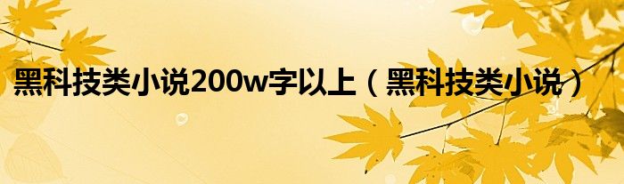 大家好,小晋来为大家解答以下问题,关于黑科技类小说200w字以上,黑科技类小说很多人还不知道,今天让我们一起来看看吧!