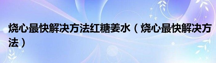 烧心最快解决方法红糖姜水(烧心最快解决方法)
