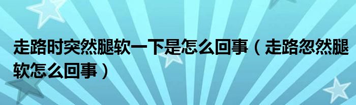 大家好,linda来为大家解答以上的问题。走路时突然腿软一下是怎么回事,走路忽然腿软怎么回事很多人还不知道,现在让我们一起来看看吧!