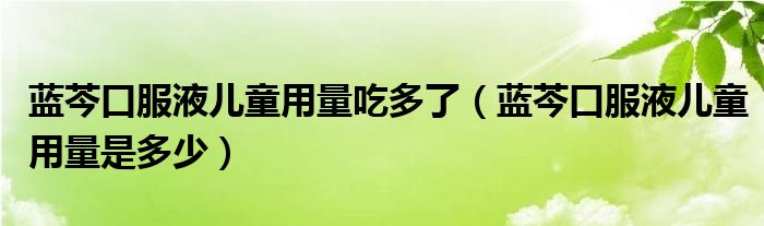 大家好,linda来为大家解答以上的问题。蓝芩口服液儿童用量吃多了,蓝芩口服液儿童用量是多少很多人还不知道,现在让我们一起来看看吧!