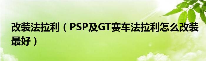 1,PSP GT赛车法拉利怎么改装最好:跑普通赛道用默认的就最好了,如果直线较多可以把底盘放低,轮胎抓地减小