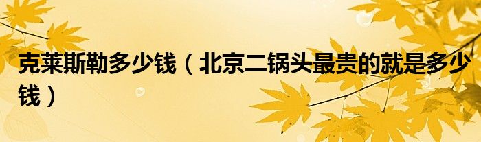 大家好,小常来为大家解答以下问题,对于克莱斯勒多少钱,北京二锅头最贵的就是多少钱很多人还不知道,今天让我们一起来看看吧!