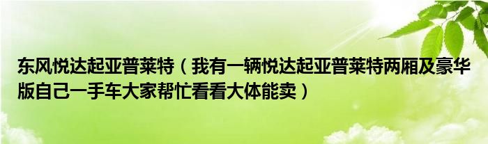 1,我有一辆悦达起亚普莱特两厢 豪华版自己一手车大家帮忙看看大体能卖:大概2万5千