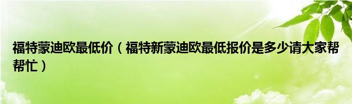 1,福特新蒙迪欧最低报价是多少请大家帮帮忙:最低报价19万8千元一次性付清,按接每个月5000元的费用.