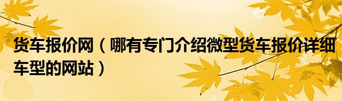 货车报价网(哪有专门介绍微型货车报价详细车型的网站)