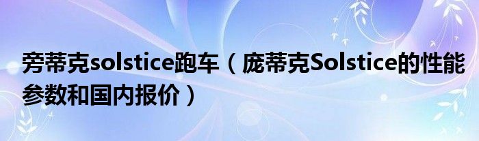 1,庞蒂克Solstice的性能参数和国内报价 :L4发动机 最高时速:220 百公里加速:7.8秒 变速箱:5速手动/5速自动 国内报价(RMB):3.3万美元(约合人民币22万 目前还没有往中国投产)