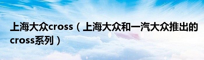 大家好,小常来为大家解答以下问题,对于上海大众cross,上海大众和一汽大众推出的cross系列很多人还不知道,今天让我们一起来看看吧!