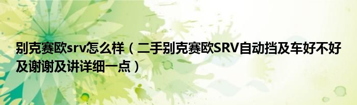 1,二手别克赛欧SRV自动挡 车好不好 谢谢 讲详细一点:不好,毛病多啊。油耗大,刹车效果也不好。