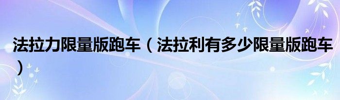6,法拉力限量版跑车多少钱 :法拉利有很多,不知道你说的是哪一款有,ENZO FXX 现在刚出的拉法拉利!而且法拉利的限量版 价格不是问题,会做身份调查,决定是否卖给你