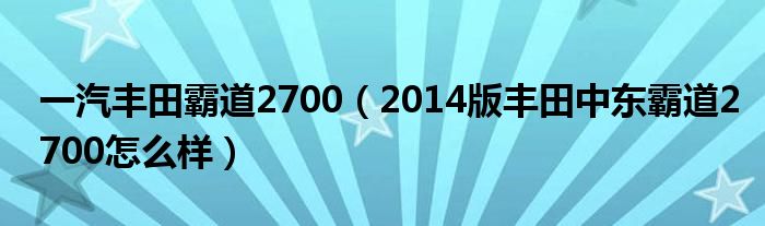 大家好,小常来为大家解答以下问题,对于一汽丰田霸道2700,2014版丰田中东霸道2700怎么样很多人还不知道,今天让我们一起来看看吧!