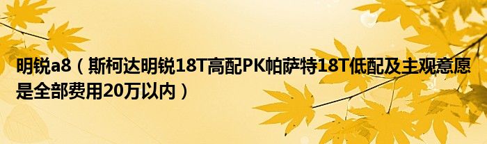 大家好,小常来为大家解答以下问题,对于明锐a8,斯柯达明锐18T高配PK帕萨特18T低配及主观意愿是全部费用20万以内很多人还不知道,今天让我们一起来看看吧!