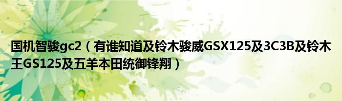 大家好,小常来为大家解答以下问题,对于国机智骏gc2,有谁知道及铃木骏威GSX125及3C3B及铃木王GS125及五羊本田统御锋翔很多人还不知道,今天让我们一起来看看吧!