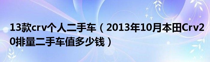 大家好,小常来为大家解答以下问题,对于13款crv个人二手车,2013年10月本田Crv20排量二手车值多少钱很多人还不知道,今天让我们一起来看看吧!