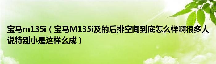 1,宝马M135i 的后排空间到底怎么样啊很多人说特别小是这样么成:空间足够175左右的成年人,空间小的是上一代