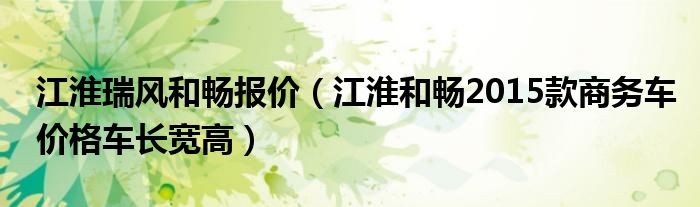 大家好,小常来为大家解答以下问题,对于江淮瑞风和畅报价,江淮和畅2015款商务车价格车长宽高很多人还不知道,今天让我们一起来看看吧!