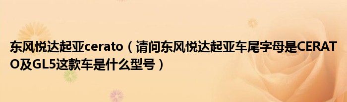 大家好,小常来为大家解答以下问题,对于东风悦达起亚cerato,请问东风悦达起亚车尾字母是CERATO及GL5这款车是什么型号很多人还不知道,今天让我们一起来看看吧!