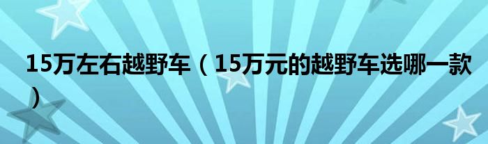 大家好,小常来为大家解答以下问题,对于15万左右越野车,15万元的越野车选哪一款很多人还不知道,今天让我们一起来看看吧!