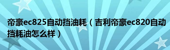 大家好,阳阳来为大家讲解下。帝豪ec825自动挡油耗,吉利帝豪ec820自动挡耗油怎么样很多人还不知道,现在让我们一起来看看吧!