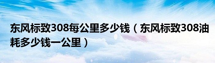 大家好,阳阳来为大家讲解下。东风标致308每公里多少钱,东风标致308油耗多少钱一公里很多人还不知道,现在让我们一起来看看吧!