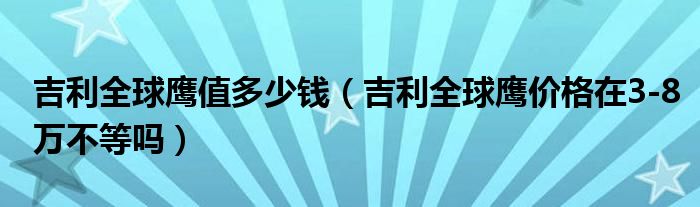 大家好,阳阳来为大家讲解下。吉利全球鹰值多少钱,吉利全球鹰价格在3-8万不等吗很多人还不知道,现在让我们一起来看看吧!