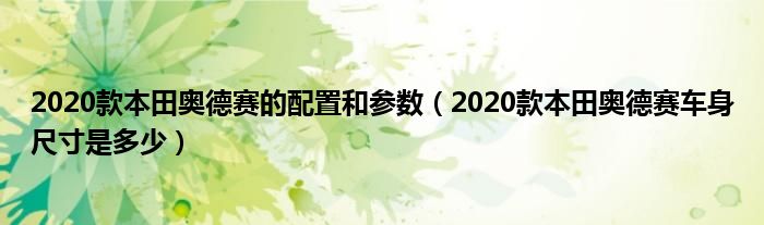 大家好,阳阳来为大家讲解下。2020款本田奥德赛的配置和参数,2020款本田奥德赛车身尺寸是多少很多人还不知道,现在让我们一起来看看吧!