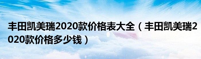 大家好,阳阳来为大家讲解下。丰田凯美瑞2020款价格表大全,丰田凯美瑞2020款价格多少钱很多人还不知道,现在让我们一起来看看吧!