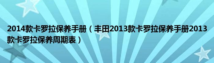 大家好,阳阳来为大家讲解下。2014款卡罗拉保养手册,丰田2013款卡罗拉保养手册2013款卡罗拉保养周期表很多人还不知道,现在让我们一起来看看吧!