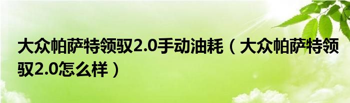 大家好,阳阳来为大家讲解下。大众帕萨特领驭2.0手动油耗,大众帕萨特领驭2.0怎么样很多人还不知道,现在让我们一起来看看吧!