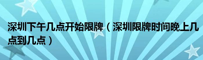 大家好,阳阳来为大家讲解下。深圳下午几点开始限牌,深圳限牌时间晚上几点到几点很多人还不知道,现在让我们一起来看看吧!