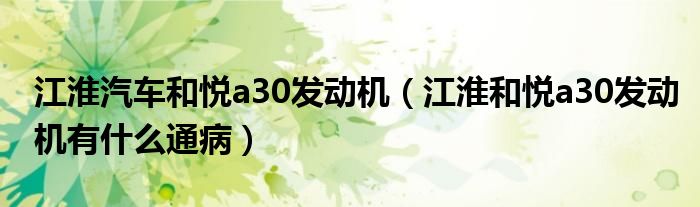 大家好,阳阳来为大家讲解下。江淮汽车和悦a30发动机,江淮和悦a30发动机有什么通病很多人还不知道,现在让我们一起来看看吧!