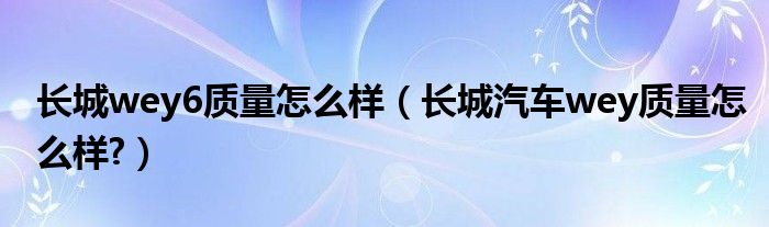 长城wey6质量怎么样(长城汽车wey质量怎么样?)
