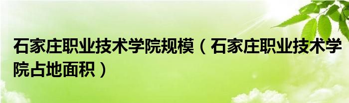 大家好,小晋来为大家解答以下问题,关于石家庄职业技术学院规模,石家庄职业技术学院占地面积很多人还不知道,今天让我们一起来看看吧!