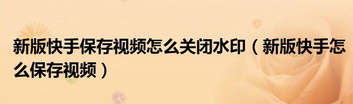 大家好,小晋来为大家解答以下问题,关于新版快手保存视频怎么关闭水印,新版快手怎么保存视频很多人还不知道,今天让我们一起来看看吧!