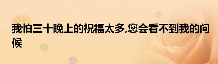 关于我怕三十晚上的祝福太多,您会看不到我的问候这个很多人还不知道,今天菲菲来为大家解答以上的问题,现在让我们一起来看看吧!