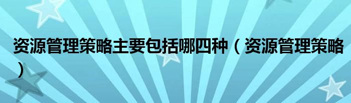 关于资源管理策略主要包括哪四种,资源管理策略这个很多人还不知道,今天菲菲来为大家解答以上的问题,现在让我们一起来看看吧!