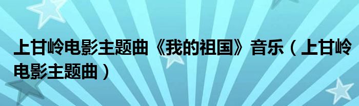 关于上甘岭电影主题曲《我的祖国》音乐,上甘岭电影主题曲这个很多人还不知道,今天菲菲来为大家解答以上的问题,现在让我们一起来看看吧!