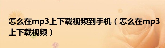 关于怎么在mp3上下载视频到手机,怎么在mp3上下载视频这个很多人还不知道,今天菲菲来为大家解答以上的问题,现在让我们一起来看看吧!