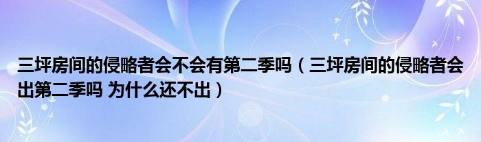 关于三坪房间的侵略者会不会有第二季吗,三坪房间的侵略者会出第二季吗 为什么还不出这个很多人还不知道,今天菲菲来为大家解答以上的问题,现在让我们一起来看看吧!