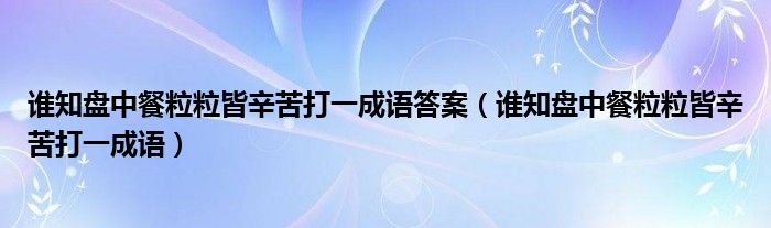 关于谁知盘中餐粒粒皆辛苦打一成语答案,谁知盘中餐粒粒皆辛苦打一成语这个很多人还不知道,今天菲菲来为大家解答以上的问题,现在让我们一起来看看吧!